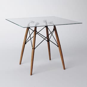 Mesa Eames Eiffel Quadrado Tampo De Vidro 90cmA sua cozinha ou sala de jantar ficará completa com essa linda Mesa! Contendo um design de móveis moderno, elegante e com uma ousada combinação de materiais, esse é um produto que certamente esbanja estilo, elegância e muito requinte.Especificações técnicas:Modelo: Eiffel WoodTipo: QuadradaCor do tampo: VidroCor da base dos pés: Wood (Madeira)Material do tampo: Vidro TemperadoMaterial dos pés: MadeiraDimensões: Altura: 76 cm // Largura: 90 cm // Profundidade: 90 cm**** NÃO ACOMPANHA CADEIRAS Marca: IRON WOOD