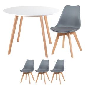 Altura: 70 cm | Cor: Multicolorido | Garantia do fabricante: 3 meses | Largura: 100 cm | Peso do produto: 25 kg | Produto: Conjunto de Mesa e Cadeiras | Quantidade de lugares: 3 | Material do tampo (mesa): MDF laqueado (Laca fosca) | Material da base (mesa): Madeira | Altura (mesa): 70 cm | Diâmetro (mesa): 100 cm | Material do assento (cadeiras): Polipropileno e couro PU | Material da base (cadeiras): Madeira natural | Altura do assento (cadeiras): 44 cm | Largura do assento (cadeiras): 48 cm | Profundidade do assento (cadeiras): 43 cm | Fabricante: Mobili | RBN: 17100657011 Cor: Mesa branco com cadeiras cinza escuro