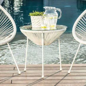 A Mesa Cozumel 50cm em Ratan PE e a escolha ideal para quem busca elegancia e funcionalidade em areas externas. Com um design moderno e charmoso na cor branca, esta mesa agrega valor estetico a varandas, jardins, quintais e espacos gourmet, proporcionando um toque de sofisticacao ao ambiente. Sua estrutura em Ratan PE garante alta durabilidade e resistencia as condicoes climaticas, tornando-a perfeita para uso continuo ao ar livre.