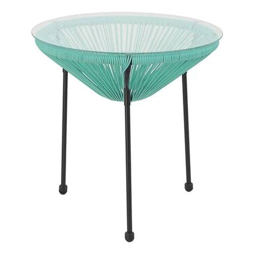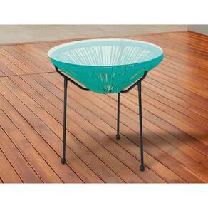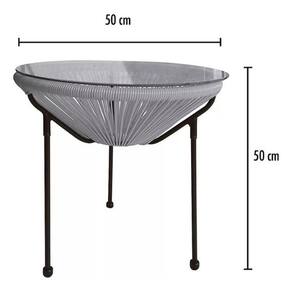 "Eleve o estilo da sua casa com a elegante Mesa Redonda em Aço e Vidro de 50x50cm, com detalhes em rattan azul, da linha Home Deluxe.
