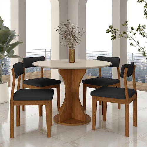Mesa Redonda Cosença Com 4 Cadeiras Estofadas Fre/off/s.preto - M.a - Marrom