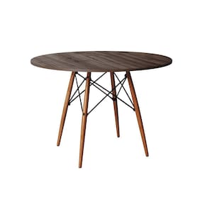 Mesa Redonda De Jantar Eames Eiffel 110cm Amêndoa Base Madeira Maciça - Cor: Marrom
