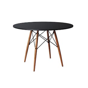 Mesa Redonda De Jantar Eames Eiffel 90cm Preta Base Madeira Maciça - Preto