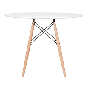 MDF laqueado, PU sintético, madeira e açoMesa redonda Eames 100 cm + 4 cadeiras estofadas Eiffel Botonê Mesa branco com cadeiras amarelo -