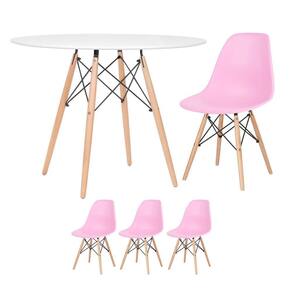 Mesa Redonda Eames 100cm Branco + 3 Cadeiras Rosa Claro