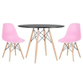 CADEIRAS: Material do assento: Polipropileno - Material da base: Madeira e aço - Altura do encosto: 81 cm - Altura do assento: 43 cm - Largura do assento: 46 cm - Profundidade do assento: 40 cm - Distância entre os pés: 40 cm - Peso suportado: 130 kg. MESA: Material do tampo: MDF laqueado (Laca fosca) - Material da base: Madeira e aço - Altura: 75 cm - Diâmetro: 100 cm.