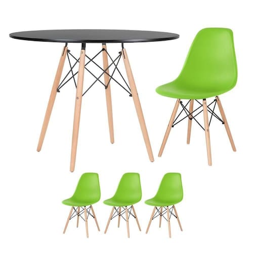 Mesa Redonda Eames 100cm Preto + 3 Cadeiras Verde Claro