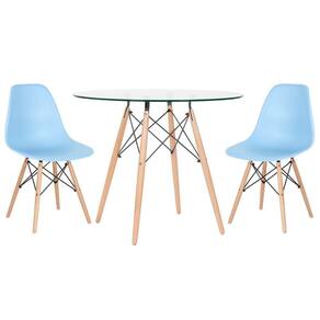 Mesa Redonda Eames Com Tampo De Vidro 90 Cm + 2 Cadeiras Eiffel Dsw Azul Claro