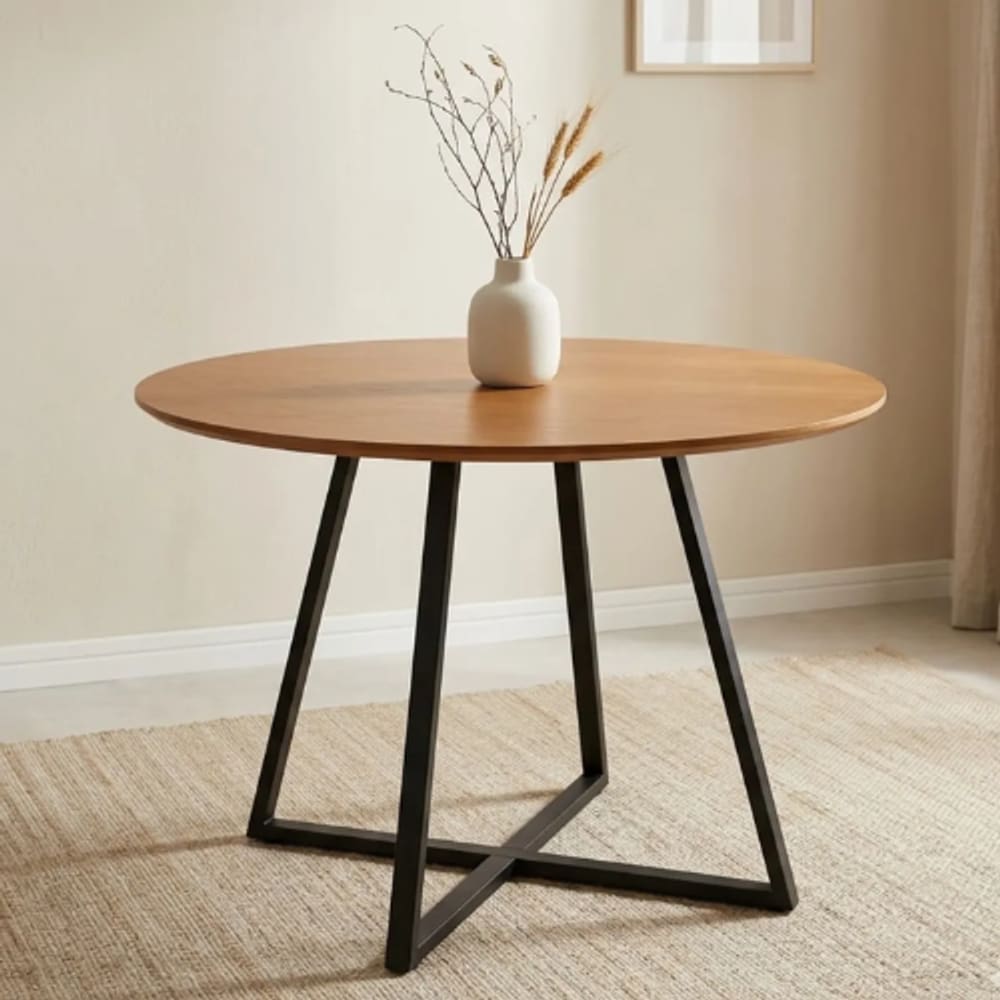 mesa redonda hairpin tampo de madeira clara 90 cm mobili