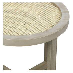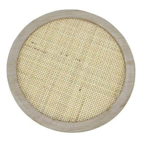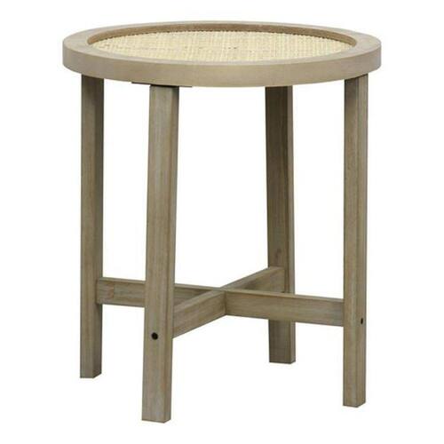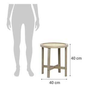 Adicione um toque de charme boho chic a sua casa com a nossa encantadora Mesa Redonda Lateral Centro de 40x40cm, feita de madeira e rattan.