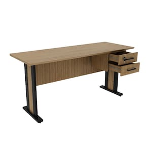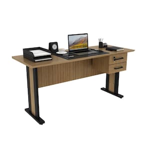 Elegância e Funcionalidade é uma das principais características da linha Office Tecno Mobili. A combinação de Amêndoa com Preto, é a escolha ideal para quem busca unir design moderno, praticidade e organização no dia a dia profissional. Com estrutura robusta e acabamento refinado, a linha é composta por tampos com frente usinados de 2,5cm, Ideal para escritórios corporativos, home offices ou salas de estudo, agregando propósito e estilo para transformar sua rotina de trabalho. Mesa de Escritório e Atendimento 160x75,4x60cm. Possui tampo 2,5cm de com frente usinada, pés preto de 2,5cm, 2 gavetas com corrediças telescópicase e chave. Puxadores de alumínio preto, móvel com opção de montagem reversível e acabamento nas costas. Estrutura em MDP e acabamento em BP. Produto Montado: Sim Acabamento do Tampo: BP Acabamento dos Pés: BP Acompanha Manual de Instalação: Sim Ambiente Principal: Escritório codigo_ean: 7900288243515 Complexidade da Montagem: Média: pode ser montado por mais de uma pessoa e/ou necessite de maior conhecimento para montagem Cor: Amêndoa/Preto Cor da Base: Prata Cor do Produto: Amêndoa/Preto Cor do Tampo: Marrom Cor Flex: Amêndoa /Preto Cor Interna: Amêndoa/Preto Dobrável: Não Escala de Brilho: Semi-Brilho Espessura do Tampo: 25 mm Formato: Retangular Itens Inclusos: 1 Escrivaninha, Kit Ferragens e Manual de Montagem Lado de Montagem: Direito Linha ou Coleção: Office Manual de Montagem e Instalação: https://product-hub-prd.madeiramadeira.com.br/413133750/documents/83cfc624-8a51-41ec-8eff-6617c59e0e9b32362006417588072285586.pdf Marca: Tecno Mobili Material da Estrutura: MDP Material do Puxador da Gaveta: Metal Material do Tampo: MDP Material dos Pés: MDP Material Principal: MDP Modelo Infantil: Não Montagem Flex: Sim, gavetas tanto para o lado esquerdo quanto para o direito. Necessita Montagem: Sim Origem do Produto: Nacional Pés com Regulagem de Altura: Não Pés Reguláveis: Não Peso: 32,55 kg Peso Máximo por Gaveta: 3 kg Posição da Gaveta: Montagem Flex - Esquerda ou Direita Possui Acabamento na Parte de Trás: Sim Possui Borda Arredondada: Não Possui Caixa de Tomada: Não Possui Espelhos: Não Possui Estante: Não Possui Gaveta para Pasta Suspensa: Sim Possui Gaveteiro: Não Possui Passa Cabos: Não Possui Porta Objetos: Não Possui suporte para CPU: Não Possui Suporte para Teclado: Não Possui Vidro: Não Quantidade de Gavetas: 02 Gavetas Recomendações de Uso, Manutenção e Limpeza: Para uma limpeza mais efetiva, utilizar apenas pano macio umedecido e sabão neutro. Não utilizar produtos abrasivos. Sapatas Niveladoras: Sim Sistema de Montagem: Aconselhamos que a montagem seja feita por um profissional. Forre o chão com o próprio papelão de nossas embalagens para evitar danos e arranhões e monte o móvel deitado de costas para cima. Após montado não expor o móvel a fonte de calor ou umidade. Suporta Até (kg): 15 kg Tipo de Corrediça da Gaveta: Metálica Telescópica