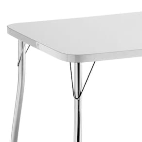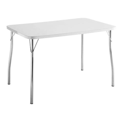 Ela tem estrutura resistente que oferece boa sustentação ao tampo, pois é feita com tubos de aço carbono. Possui tampo retangular de aglomerado revestido com fórmica, o que facilita a composição, pois é fácil de encaixar em qualquer ambiente. Tem dimensão de 78x76x120 cm e espaço para 4 cadeiras. As cadeiras não acompanham o produto