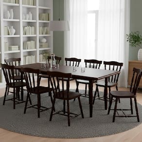 O Conjunto de Jantar 100250EA é a opção perfeita para transformar e valorizar seu lar! Com Mesa ampla e espaçosa acompanhada de 10 Cadeiras, compostas com Estrutura e pés em Madeira Maciça Eucalipto e tampo (mesa) em MDP revestido com lâmina de madeira espessura de 2,3 cm e bordas reforçadas de 3 cm, além de acabamento em verniz acetinado. O design é valorizado pelo encosto e pés torneados, com 3,8 cm de largura, assentos com 2,3 cm de espessura, suportando até 120 kg cada. NÃO ACOMPANHA OBJETOS NEM DEMAIS DECORAÇÕES. Este produto será entregue em 3 volumes.