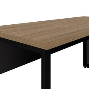 Mesa Retangular Pé Quadro: Tampo confeccionado em chapa de média densidade Mdp (Médium Density Particleboard) com partículas selecionadas de madeira de reflorestamento, aglutinadas e consolidadas com resina sintética e termo estabilizadas sob pressão, com 4,0 cm de espessura, revestido em ambas as faces com filme termo prensado melamínico, com espessura mínima de 0,02 cm (Bp). O mesmo é produzido com sistema de engrossuramento com pinos em aço zincado 3,5 cm (compr.) x 0,1 cm (esp.) para fixação das travessas. O tampo é encabeçado em todos os topos com fita borda Pvc (Polyvinyl Chloride) 0,1 cm, colada a quente pelo sistema Hotmelt CQ-645PUR que é elaborado à base de poliuretano reativo (Pur) que, em contato com a umidade relativa do ar e/ou dos substratos, inicia a sua reticulação. Produto Montado: Sim Acompanha Manual de Instalação: Sim Ambiente Principal: Escritório codigo_ean: 7909903975022 Complexidade da Montagem: Média: pode ser montado por mais de uma pessoa e/ou necessite de maior conhecimento para montagem Cor: AMADEIRADO CLARO/PRETO Cor do Produto: AMADEIRADO CLARO/PRETO Escala de Brilho: Fosco Espessura do Tampo: 30 mm Itens Inclusos: 1 mesa Manual de Montagem e Instalação: https://product-hub-prd.madeiramadeira.com.br/960941/documents/fc6e13f7-1e25-44c7-864b-56f4bbcb5c6215245239715981728928165008.pdf Marca: Espresso Móveis Material do Tampo: BP Material Principal: MDP Necessita Montagem: Sim Origem do Produto: Nacional Peso: 23,93 kg Possui Portas: Não Recomendações de Uso, Manutenção e Limpeza: Antes de limpar recomenda-se que seja retirada toda a poeira com um espanador ou flanela seca para evitar riscos na superfície, após utilize um pano umido em água, macio e limpo. Sistema de Montagem: parafusos e cavilhas