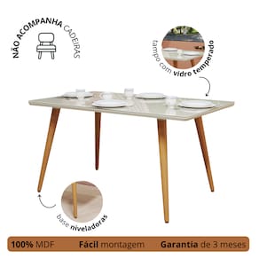 DIFERENCIAIS Design elegante e moderno: pés palito retrô combinados com tampo de vidro sofisticado Formato retangular: aproveita melhor o espaço e acomoda utensílios com praticidade Durabilidade e resistência: estrutura em MDF de alta qualidade e vidro temperado de fácil manutenção Fácil de limpar: tampo de vidro que facilita a remoção de sujeira e manchas Versátil na decoração: combina com diversos estilos, do clássico ao contemporâneo