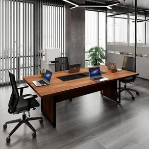 Altura: 74 cm Acabamento do Tampo: BP Melamínico Acabamento dos Pés: Pintura Acompanha Manual de Instalação: Sim Ambiente Principal: Escritório codigo_ean: 7900288243522 Complexidade da Montagem: Média: pode ser montado por mais de uma pessoa e/ou necessite de maior conhecimento para montagem Cor: Nogal / Preto Cor da Base: Marrom Cor do Produto: Nogal / Preto Cor do Tampo: Marrom Cor Flex: Não Cor Interna: Marrom Dobrável: Não Escala de Brilho: Fosco Espessura do Tampo: 25 mm Formato: Retangular Itens Inclusos: 1 Mesa de Reunião e Kit Ferragens Linha ou Coleção: Corporate Manual de Montagem e Instalação: https://cdn2.madeiramadeira.com.br/atributo/casa-lar-shop-ltda/3238195-6595-17588252523549.pdf Marca: F5 Office Material da Estrutura: MDP/Metal Material do Tampo: MDP Material dos Pés: Metal Material Principal: MDP Montagem Flex: Não, o produto só pode ser montado conforme a imagem. Necessita Montagem: Sim Origem do Produto: Nacional Pés com Regulagem de Altura: Sim Pés Reguláveis: Sim Peso: 147,85 kg Possui Acabamento na Parte de Trás: Sim Possui Borda Arredondada: Não Possui Caixa de Tomada: Sim Possui Gaveta para Pasta Suspensa: Não Possui Gaveteiro: Não Possui Passa Cabos: 01 Possui Porta Objetos: Sim Possui Vidro: Não Recomendações de Uso, Manutenção e Limpeza: Para uma limpeza mais efetiva, utilizar apenas pano macio e sabão neutro. Não utilizar produtos abrasivos. Sapatas Niveladoras: Sim Sistema de Montagem: Parafusos e buchas metálicas. Suporta Até (kg): 80 kg Marca: Não Informado