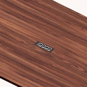 Mesa de reunião com espaço para até 8 pessoas, com estrutura firme e caixa de tomadas para conexão rápida de equipamentos. Solução inteligente e pronta para uso em ambientes corporativos modernos, como salas de reunião ou coworkings.
