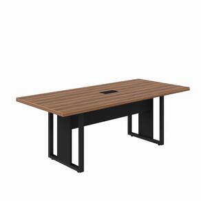 Mesa Reunião Retangular Start 2,00 x 0,90 - Tampo 40mm - Pé Quadro em Aço - Nogal/Preto