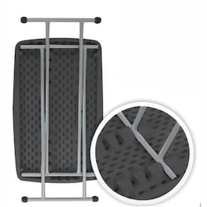 A Mesa Robust destaca-se pela qualidade de seus materiais. Seu tampo é confeccionado em polietileno de alta densidade, proporcionando resistência e durabilidade mesmo nas condições mais desafiadoras. A estrutura em aço esmaltado não só adiciona robustez como também confere um design moderno e elegante à mesa.