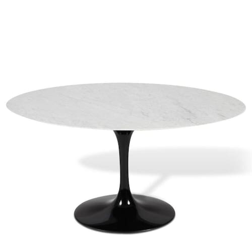 Mesa Saarinen Oval criada pelo Eero Saarinen. Foi projetada em 1956 como parte da icônica Coleção Pedestal, Saarinen procurou resolver a bagunça em casas e escritórios americanos criados por pernas de cadeiras e mesas convencionais, deixando assim um ambiente elegante e sofisticado.