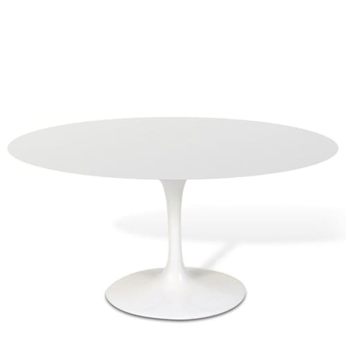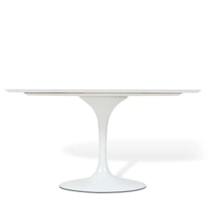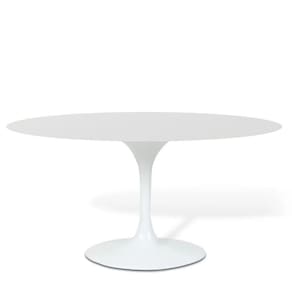 Mesa Saarinen Oval criada pelo Eero Saarinen. Foi projetada em 1956 como parte da icônica Coleção Pedestal, Saarinen procurou resolver a bagunça em casas e escritórios americanos criados por pernas de cadeiras e mesas convencionais, deixando assim um ambiente elegante e sofisticado.
