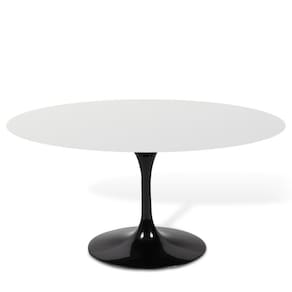 Mesa Saarinen Oval criada pelo Eero Saarinen. Foi projetada em 1956 como parte da icônica Coleção Pedestal, Saarinen procurou resolver a bagunça em casas e escritórios americanos criados por pernas de cadeiras e mesas convencionais, deixando assim um ambiente elegante e sofisticado.