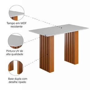 Mesa Sala De Jantar 1,60m Ripada Santiago Madeirado/off White Dobuê Madeirado/off White A mesa Santiago 1,60m é a escolha perfeita para cozinhas e salas de jantar que buscam conforto e estilo. A mesa conta com tampo em MDF de alta qualidade e base dupla ripada, que proporciona um visual elegante e atual, transformando o ambiente com um toque de modernidade e sofisticação. Feita com materiais resistentes e fáceis de limpar, garantindo maior durabilidade e resistência excepcional. MEDIDAS: [ A ] = 80 cm [ L ] = 160 cm [ P ] = 90 cm PESO: 49 Kg PESO SUPORTADO: 20Kg (distribuídos) MODELO: Mesa Sala de Jantar 1,60m Ripada Santiago MARCA: Dobuê COR DA MESA: Estrutura: Madeirado / Tampo: Off White ESTRUTURA: MDF ACABAMENTO: Pintura UV MATERIAL DO TAMPO: MDF DIFERENCIAL: Mesa com base dupla ripada, material em MDF de alta resistência. SISTEMA DE MONTAGEM: Parafusos ITENS INCLUSOS: 1 Mesa, 1 manual de montagem e 1 kit parafusos INSTRUÇÕES E CUIDADOS: Limpar com pano levemente umedecido com água, não utilizar produtos abrasivos GARANTIA: 3 meses pelo fabricante.