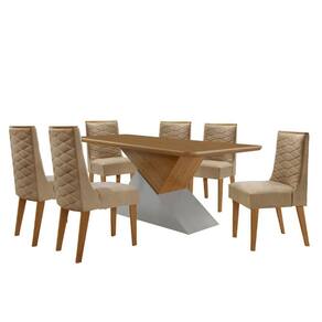 Mesa Sala De Jantar Aster 180cm E 6 Cadeiras Safira Moderna Turim 07/off White/imbuia Mesa para Sala de Jantar Aster 180cm MDF Tampo Laminado Canto Copo e 6 Cadeiras Safira A Sala de Jantar Aster com Cadeiras Safira e um conjunto que exala elegancia e sofisticacao. Produzidas em MDF de qualidade, as cadeiras, totalmente estofadas, garantem conforto absoluto, enquanto os bordados no encosto em ambos lados adicionam um toque de charme exclusivo. A mesa, com sua base de linhas fluidas e formato moderno, completa o visual, tornando este ambiente ideal para desfrutar de momentos inesqueciveis. Com esse conjunto, voce tera a combinacao perfeita de qualidade e conforto que merece!