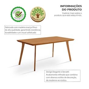 A mesa Millena é a escolha ideal para quem busca sofisticação, resistência e funcionalidade, sendo perfeita para reunir a família e amigos com estilo. Seu design minimalista valoriza a beleza natural da madeira maciça, trazendo um toque rústico e elegante ao ambiente. Os pés robustos, também em madeira maciça, garantem estabilidade e durabilidade por muitos anos. Destaques: ? Produzida 100% em madeira maciça, com acabamento refinado ? Alta resistência e durabilidade ? Design versátil que combina com diversos estilos de decoração ? Pés em madeira maciça que oferecem segurança e firmeza Tipo: Mesa Modelo: Millena Cor: Castanho DIMENSÕES DO PRODUTO: Altura: 78cm Largura: 80cm Comprimento: 120cm ATENÇÃO AS IMAGENS SÃO MERAMENTE ILUSTRATIVAS E PODEM SOFRER VARIAÇÕES DE COR E PEQUENOS DETALHES DE ACORDO COM O SEU MONITOR, ILUMINAÇÃO DO AMBIENTE E ATÉ MESMO A SUA PERCEPÇÃO VISUAL. Marca: Não Informado