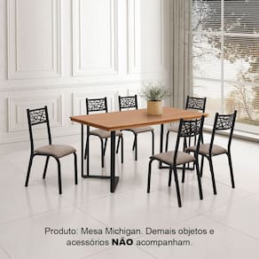 Apresentamos a Mesa de Jantar Industrial Michigan, uma peça que combina robustez e estilo para transformar sua sala de jantar em um ambiente moderno e acolhedor. Com um design que mescla o rústico da madeira maciça com a modernidade dos pés em aço preto, esta mesa é ideal para quem busca sofisticação e durabilidade. Características ? Tipo: Mesa de Jantar ? Modelo: Industrial Michigan ? Cor: Tampo em Castanho; Pés em Preto