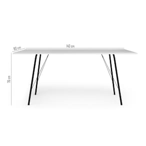 Mesa Sala De Jantar Paraty Preto 140x80cm Tampo Branco A sua cozinha ou sala de jantar só está completa com uma boa mesa para realizar as grandes refeições em família. De tampo retangular e estrutura em ferro, ela acomoda os seus convidados enquanto deixa o momento mais intimista. Mas não é só a sua rotina que ganha uma bela aliada, ela também complementa a decoração com sofisticação, além de ser harmonizável com cadeiras da mesma cor ou coloridas, seja para garantir um visual monocromático ou voltado para algo arrojado.
