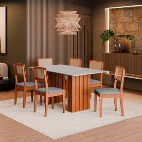 Esta mesa elegante combina a robustez das pernas de madeira com a modernidade do tampo com vidro, criando um visual clean e sofisticado para qualquer ambiente.