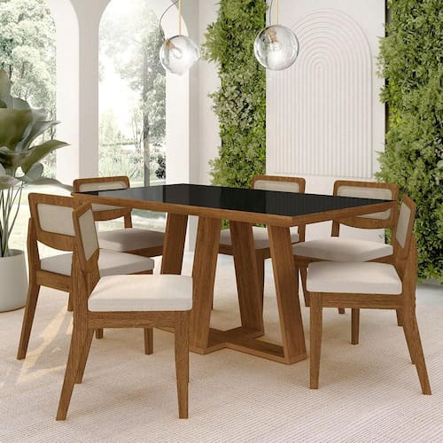 Detalhes Técnicos das Cadeiras -Assento Tapeçados, Estofados e Fixos -Encosto Tela sintética -Peso Suportado da Cadeira:90KG -Facilidade da Montagem:Média -Tonalidade da Cadeira:Freijó/Bouclé Off White -Espuma do Assento:D16 -Tipo de Pintura:UV Texturizada -Material da Estrutura:MDF 25/18mm -Medida da Cadeira:84CMx45CMx53CM