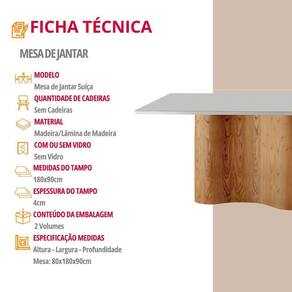 Mesa Suica 180cm Tampo Laqueado Canto Moeda Moderna Mobilia: