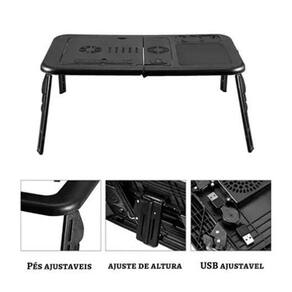 Características: Totalmente Portátil e Dobrável Material Resistente 2 Coolers de refrigeração instalados Equipado com Mouse Pad Equipado com tiras antiderrapante Material: Plástico Injetado ABS Dimensões A x L x C : 31 x 25 x 56 Elevação Máxima: 40º