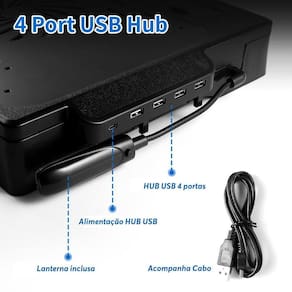 Hub USB com 4 Portas: Conecte diversos dispositivos como mouse, teclado, pendrive e outros periféricos diretamente na mesa. Basta alimentar via cabo USB incluso.