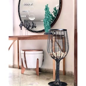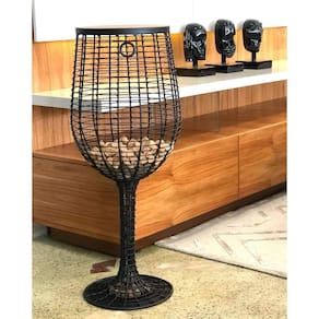MESINHA PORTA ROLHAS PARA CASA PRODUTO 100% ARTESANAL FEITO EM METAL PRODUTO RÚSTICO TAMPÃO EM MDF IDEAL PARA DECORAÇÃO DE CASAS, ADEGAS, SALAS, ETC... COR PRETA