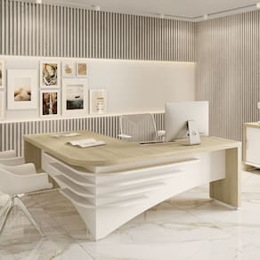 Decore e organize seu escritório para maior produtividade com a Mesa Diretor, que possui design moderno e arrojado, deixando o ambiente sofisticado e requintado! Com estrutura em MDP, e partes em Tamburato de 50mm de espessura, o móvel é robusto e de alta qualidade, o que garante sofisticação a qualquer ambiente. Detalhes curvos na parte externa garantem elegância e um design único e contemporâneo ao produto. Visando maior funcionalidade e conforto, a mesa possui uma ampla superfície de trabalho, para que você possa acomodar tudo o que for necessário de forma fácil e prática. Revestimento em BP e bordas em PVC proporcionam ao móvel maior durabilidade e resistência a impactos, umidade e atrito. Você vai se encantar! Ean: 7899805415453