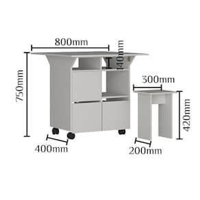 Produzida em MDP de 15mm com acabamento FF, combina resistência e praticidade no uso diário. Conta com 4 rodízios plásticos que facilitam a movimentação e 2 prateleiras internas para organização adicional. Acompanha 4 banquinhos que se encaixam perfeitamente nos nichos da base, mantendo o ambiente organizado quando não estão em uso.