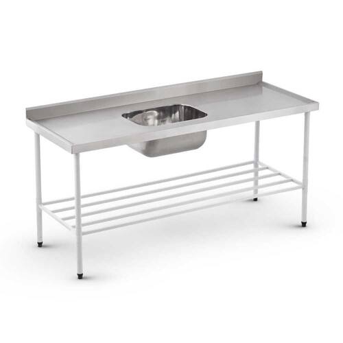 - Mesa Estrutura Pintada com tampo inox escovado 430 espessura 0,8mm com espelho e borda quebra dágua com cuba no meio; - Pés em tubos de aço galvanizado com pintura epóxi branca 1.1/2" espessura de 1,20mm dotado de sapatas niveladoras em polipropileno, sistema de montagem por encaixe; - Mesa tampo inox 430; - Estrutura pintada; - Espelho; - Borda quebra dágua; - Cuba 500x400x200mm.