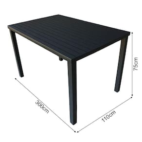 AS IMAGENS SÃO MERAMENTE ILUSTRATIVAS E PODEM SOFRER VARIAÇÕES DE COR E PEQUENOS DETALHES DE ACORDO COM O SEU MONITOR, ILUMINAÇÃO DO AMBIENTE E ATÉ MESMO A SUA PERCEPÇÃO VISUAL.Mesa Tampo Ripado Retangular 3.00x1.10m AlumÃnio Preta