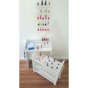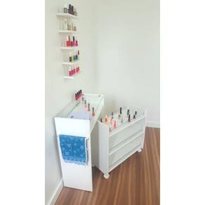Mesa com tampo de vidro e carrinho integrado elegância e funcionalidade Mesa manicura e carrinho auxiliar de esmaltes para a profissional atender da melhor forma o seu cliente.