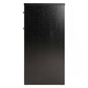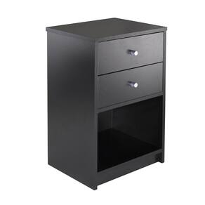 gaveta interna é 12,75" L x 9,6" P x 3,75" H. O armário aberto tem 14,25" L x 11" P x 9,3" H. - Feito em folheado preto em madeira composta. Montagem necessária.