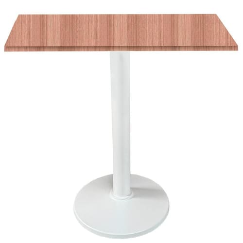 Mesa Zeta Ferro Branco 75 Cm (alt) Disco Redondo Tampo Mdp Quadrado 80 Cm Larg X 2,50 Cm Alt Noce Nat