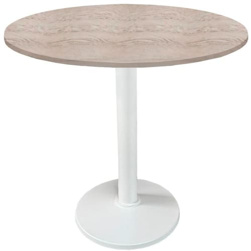 Mesa Zeta Ferro Branco 75 Cm (alt) Disco Redondo Tampo Mdp Redondo 70 Cm Larg X 2,5 Cm Alt Castanheira