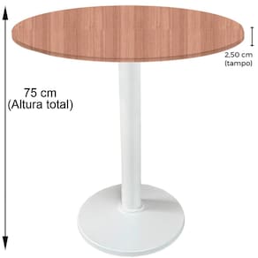 Mesa Zeta Ferro Branco 75 cm (Alt) Disco Redondo Tampo MDP Redondo 80 cm Larg x 2,5 cm (Alt) Noce Nat - Bege