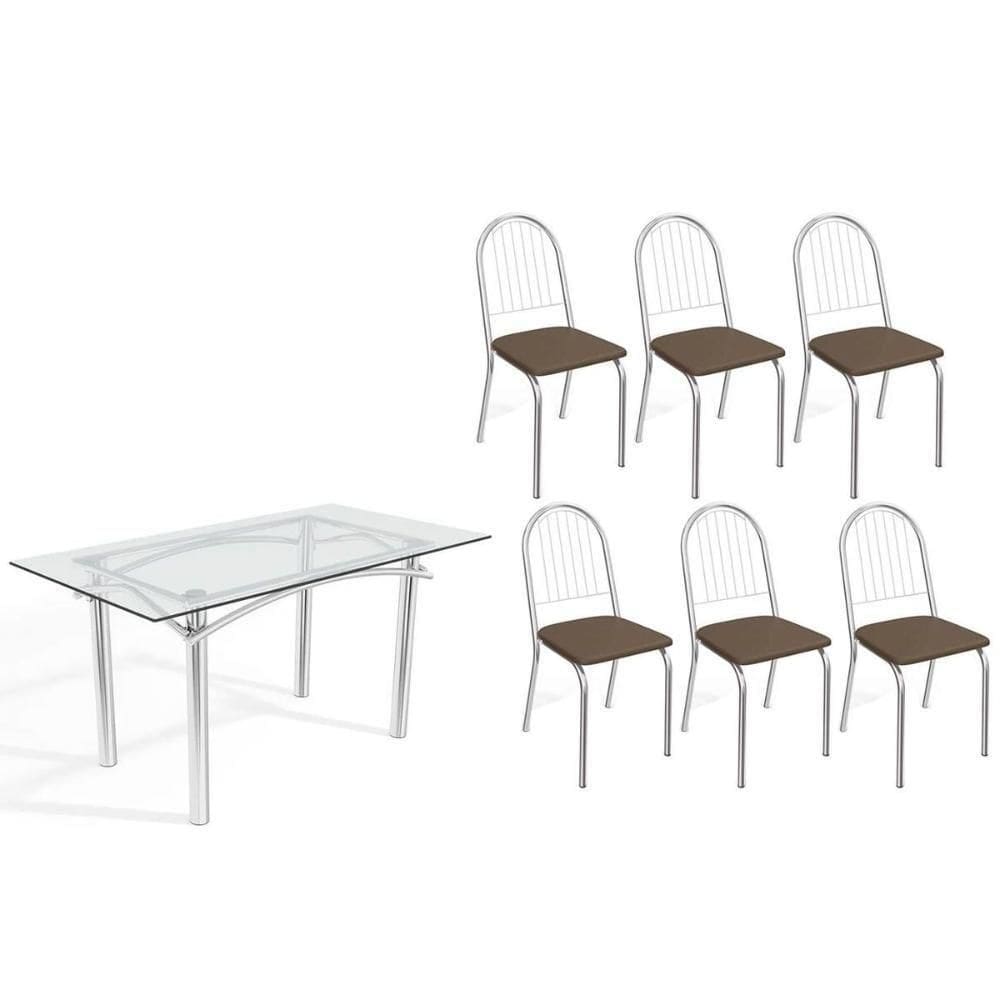 mesas 1524 vidro incolor cromada com 6 cadeiras 1701 cacau carraro