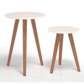 Mesinha Apoio Aparador Madeira Sala Off White Jogo de mesa lateral redonda com pé palito é o móvel perfeito para o seu larTotalmente atemporal e sofisticado garantindo uma elegância ao seu ambiente. Utilize na sala de estar dando um toque tradicional com sofisticação, mas se optar por uma decoração minimalista e moderna é simples, o jogo de mesa lateral redonda com pé palito ficará incrível no hall de entrada ou no quarto substituindo as tradicionais mesas de cabeceira. Você pode incrementar seu jogo de mesa com plantas, vaso de suculentas, um livro ou até mesmo uma vela aromática. Gostou das ideias Monte seu cantinho e compartilhe conosco sua decoração. DESCRITIVO Mesa 1Tampo de 44 cmAltura mesa 59 cmTampo em MDF com espessura de 15mm Mesa 2Tampo de 34 cmAltura mesa 44 cmTampo em MDF com espessura de 15mm Mesa Disponível na cor off white semi brilhante.Pés de madeiraOs pés são confeccionados em madeira e parafusados, assim tornando a montagem simples e rápida.Pés Disponível na cor Amêndoa claro. Itens presentes na caixa:- 1 Tampo 44cm- 1 Tampo 34cm- 3 Pés 59cm- 3 Pés 44cm- Suporte de nylon- Parafuso 7x50- Parafuso 5,5x16- Chave L Marca: Colomi