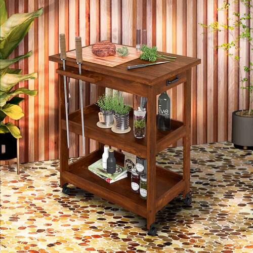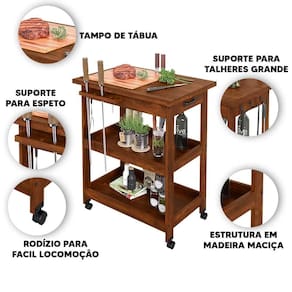 Apresentamos a Mesa Móvel com Acabamento Natural: feita em madeira maciça, durável e robusta. Seu acabamento com cera realça a beleza da madeira e a protege. Detalhes encantadores, com tábua de corte móvel, conferem charme ao ambiente. Com ferragens em metal e rodinhas para mobilidade, esta mesa une qualidade, elegância e praticidade.