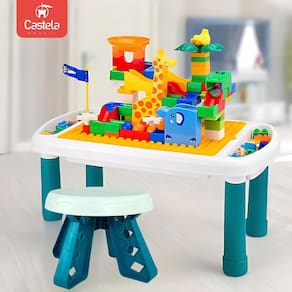 Transforme o momento de brincar em uma experiência criativa e organizada com a Mesa para Blocos de Montar Castela Esse conjunto incrível inclui uma mesa multifuncional, uma cadeira confortável e 81 peças de blocos de montar para inspirar a imaginação e estimular a criatividade das crianças.